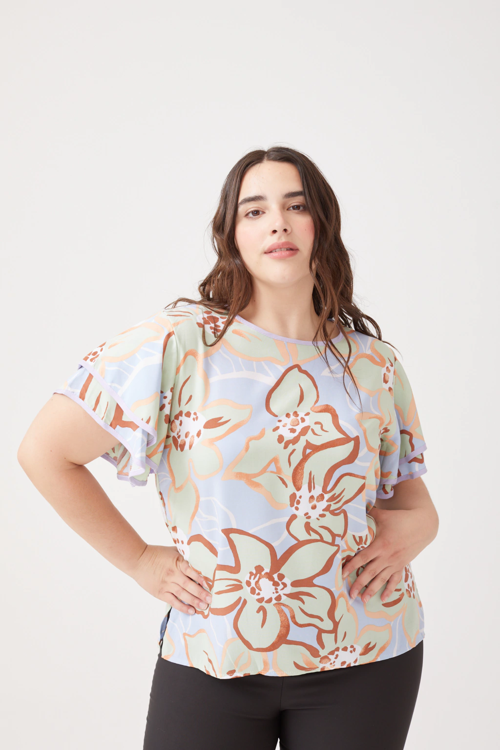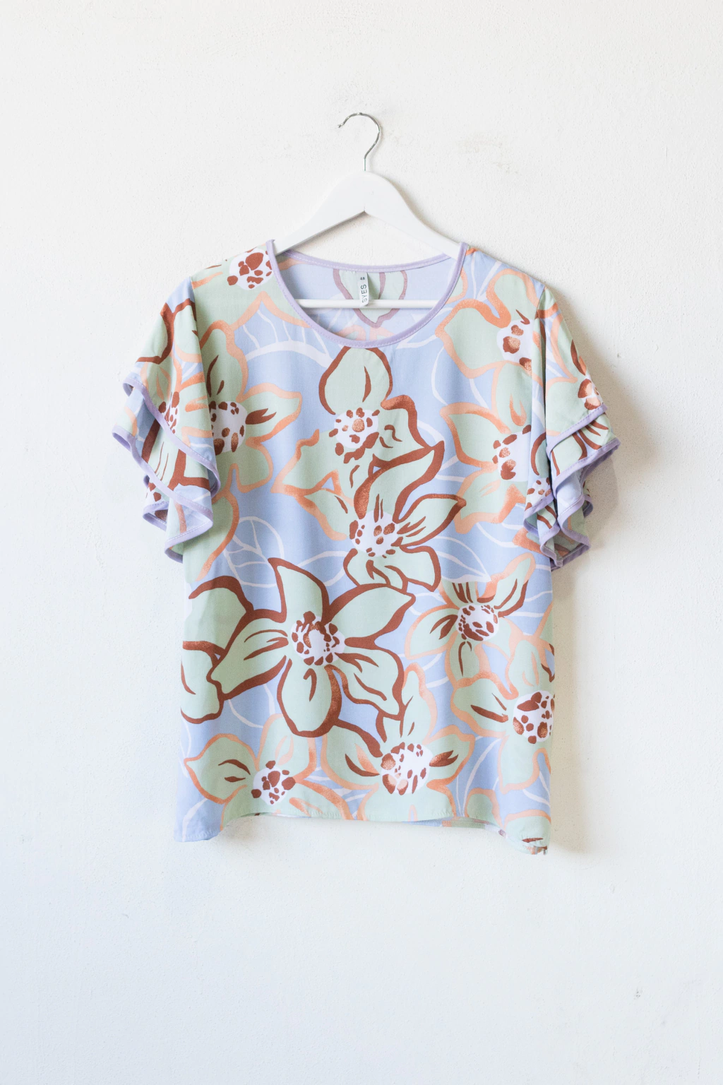 Descripción: Blusa con volados y vivo en mangas