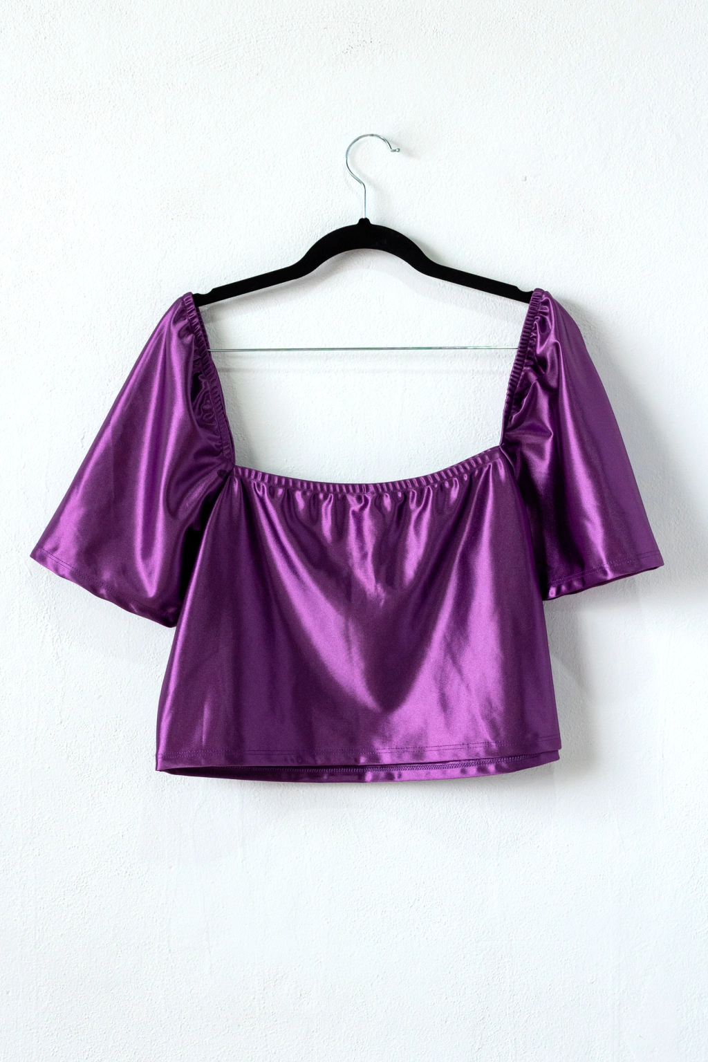Descripción: Top de satén con mangas cortas estilo princesa con elástico